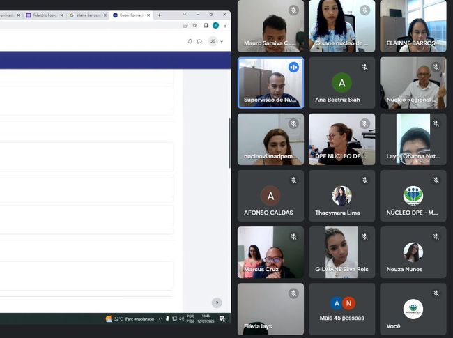 Apresentação - Os primeiros testes com a plataforma foram realizados durante reunião virtual com os servidores administrativos dos núcleos regionais no dia 12 de janeiro. Na ocasião, a diretora da Escola Superior, a defensora pública Elainne Barros, e o analista de T.I. José Pedro Santos apresentaram a ferramenta aos servidores.