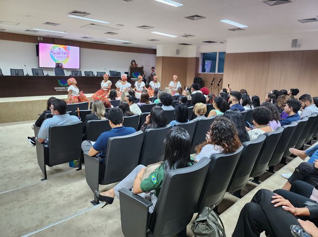 A abertura do Sarau Cultural contou com a apresentação do grupo “Meninas Show”, formado por mulheres da terceira idade, com apoio do Centro de Apoio e Prevenção à Violência contra a Pessoa Idosa (Ciapvi-DPE/MA).