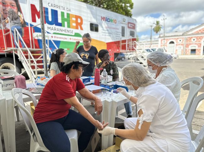 Por meio da Empresa Maranhense de Serviços Hospitalares (EMSERH), na Carreta da Mulher, foram oferecidos testes rápidos de Hepatites B e C e sífilis, mamografia, preventivo, aferição de pressão arterial e teste de glicemia.
