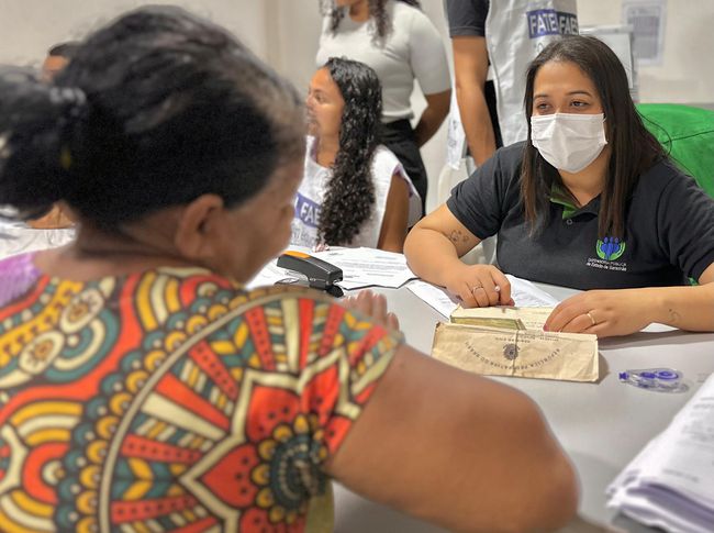 “A minha motivação pra vir até aqui é que eu nunca tive uma certidão de nascimento. Desde quando a minha mãe foi embora, e me deixou com uma tia que já até faleceu, só deixou o nome dela, a data que eu nasci e o meu nome. Eu nunca consegui me consultar e, de documento, eu não tenho absolutamente nada. Me sinto invisível porque onde eu chego não sou atendida. Agora eu vou tirar a minha carteira de identidade, vou conseguir cuidar da minha saúde e até me casar com meu companheiro, que convivo há 24 anos. A minha vida vai mudar, vai ser tranquila”, comemora a empreendedora Edna Maria de Sousa.