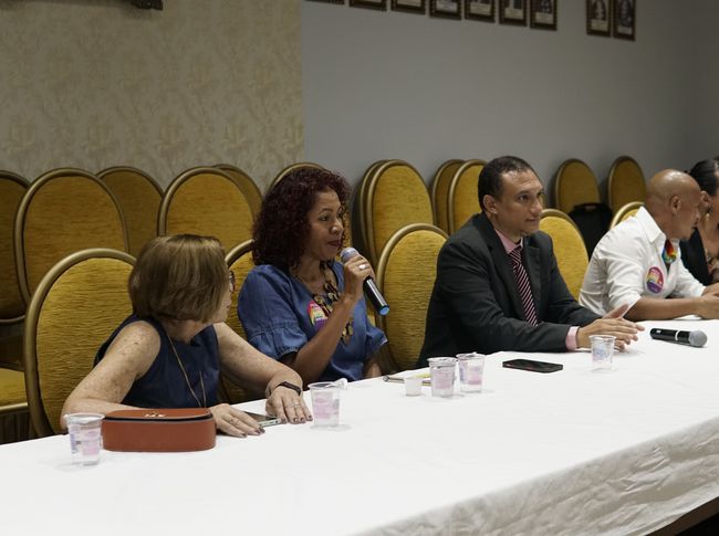 Durante o evento, membros da comunidade LGBTQIAP+ puderam compartilhar suas experiências pessoais e demandas urgentes.