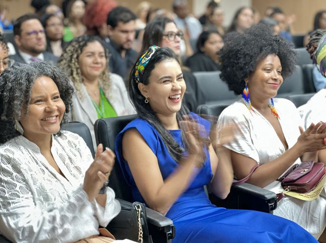 Da roda de conversa, participaram a professora de Serviço Social da Universidade Federal do Maranhão (Ufma), Carla Serrão, mediadora da mesa de trabalhos; a defensora pública Ana Heloíza de Aquino, que também faz parte da Diretoria de Igualdade Racial da Adpema; a juíza de Direito Adriana Chaves; a promotora de Justiça Samira Mercês dos Santos; a secretária adjunta de Direitos Humanos e Participação Popular, Amanda Costa; a Ialorixá que coordena o Coletivo Dan Èjì, Jô Brandão; a pastora e estudante de Pedagogia, Patrícia Ferreira e a atriz Júlia Martins.
